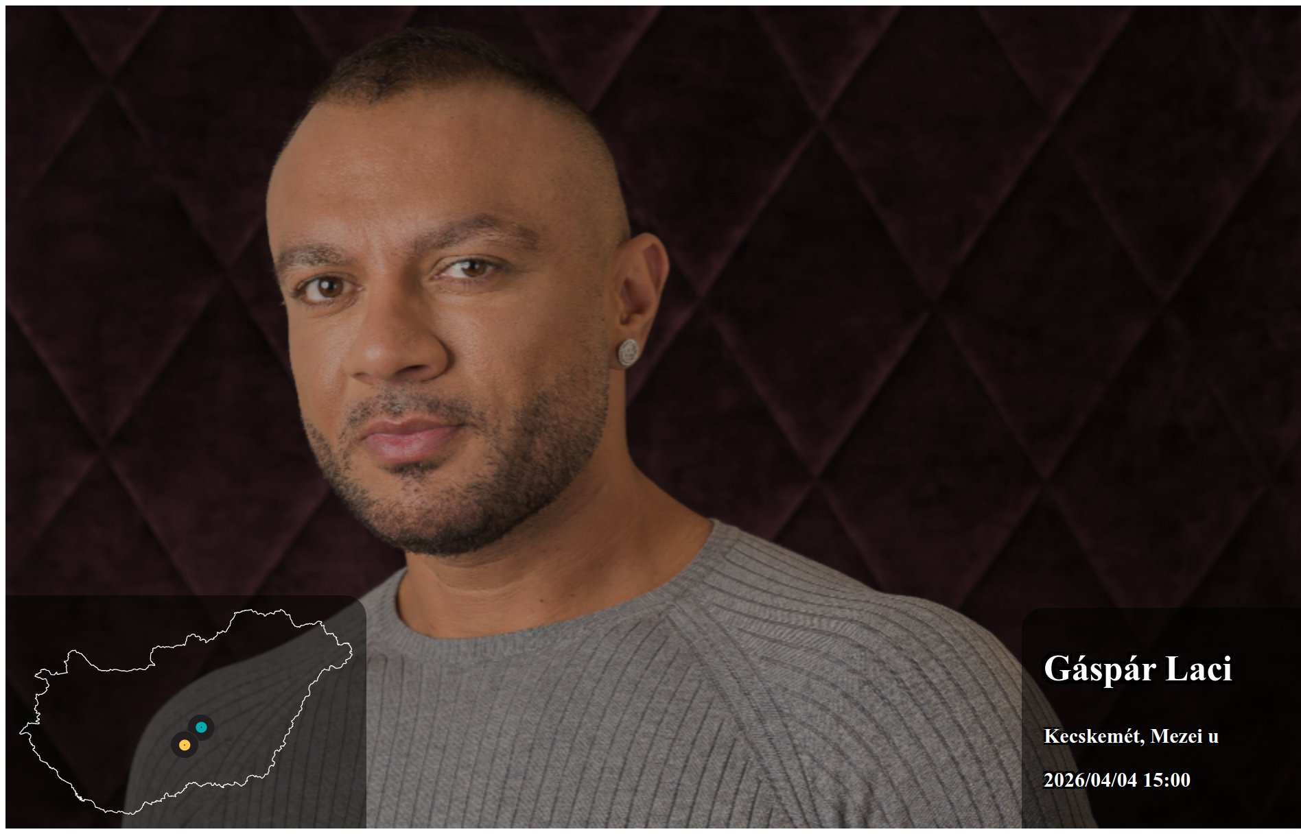 2023/09/30 15:00 kezdettel Gáspár Laci fellépése Tiszafüred településen Tiszafüred helyszínen kerül megrendezésre. Az esemény Nyilvános ingyenes rendezvény szabadtéren.
