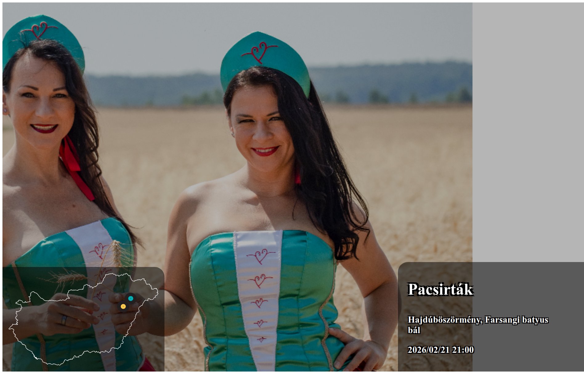 2024/08/11 19:00 kezdettel Pacsirták fellépése Szatmárhegy településen helyszínen kerül megrendezésre. Az esemény Nyilvános ingyenes rendezvény szabadtéren.