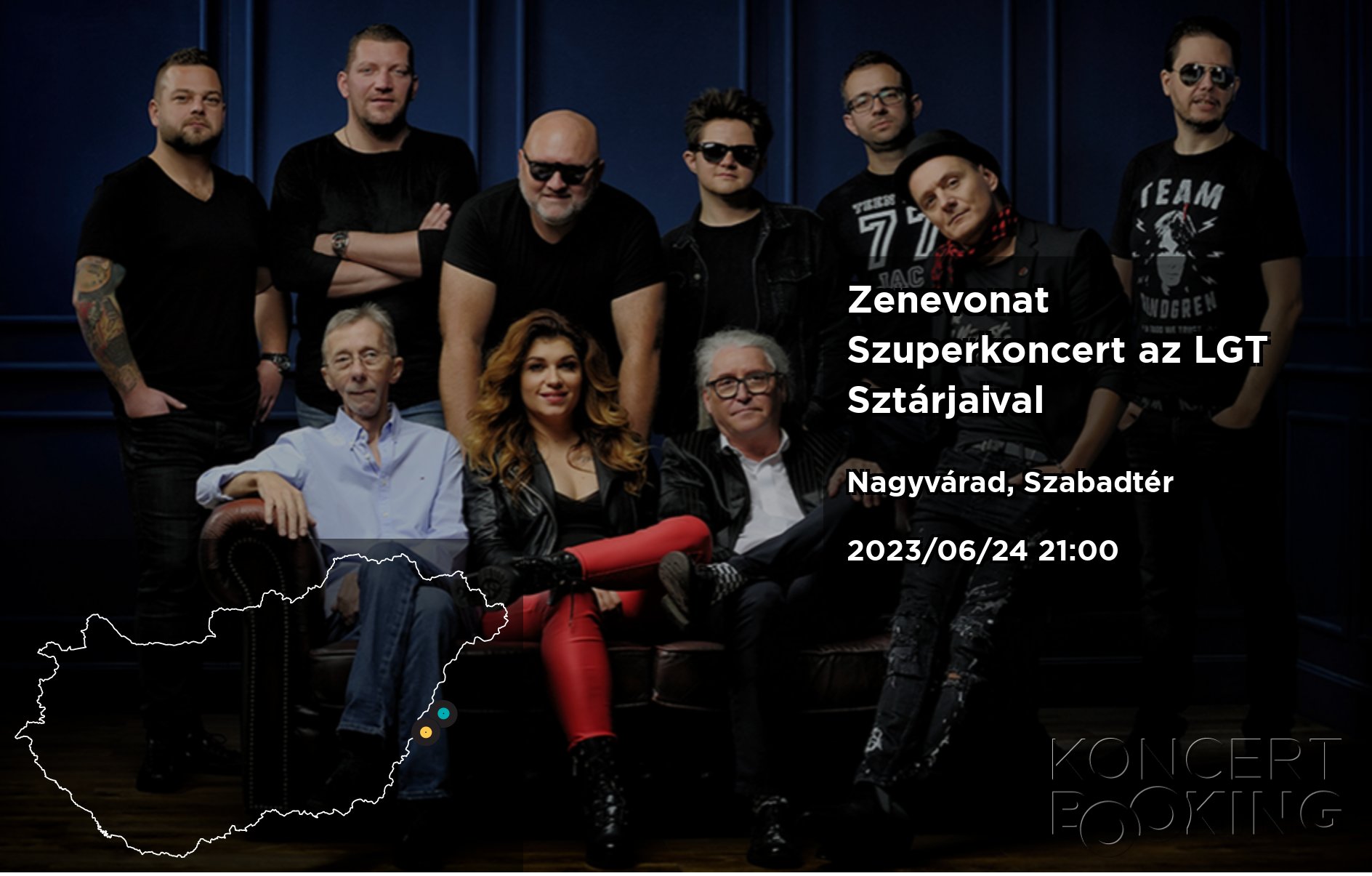 2023/06/24 21:00 kezdettel Zenevonat Szuperkoncert az LGT Sztárjaival fellépése Nagyvárad településen Szabadtér helyszínen kerül megrendezésre. Az esemény Nyilvános ingyenes rendezvény szabadtéren.